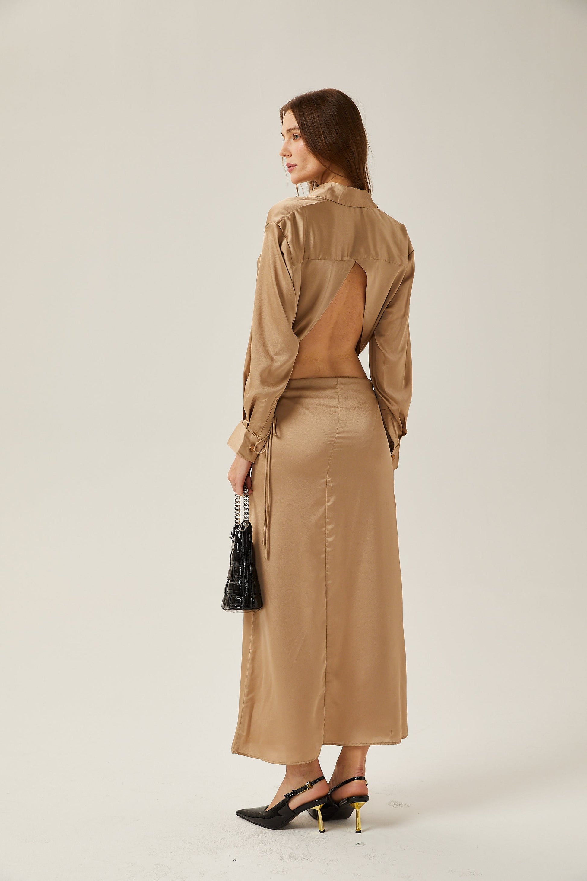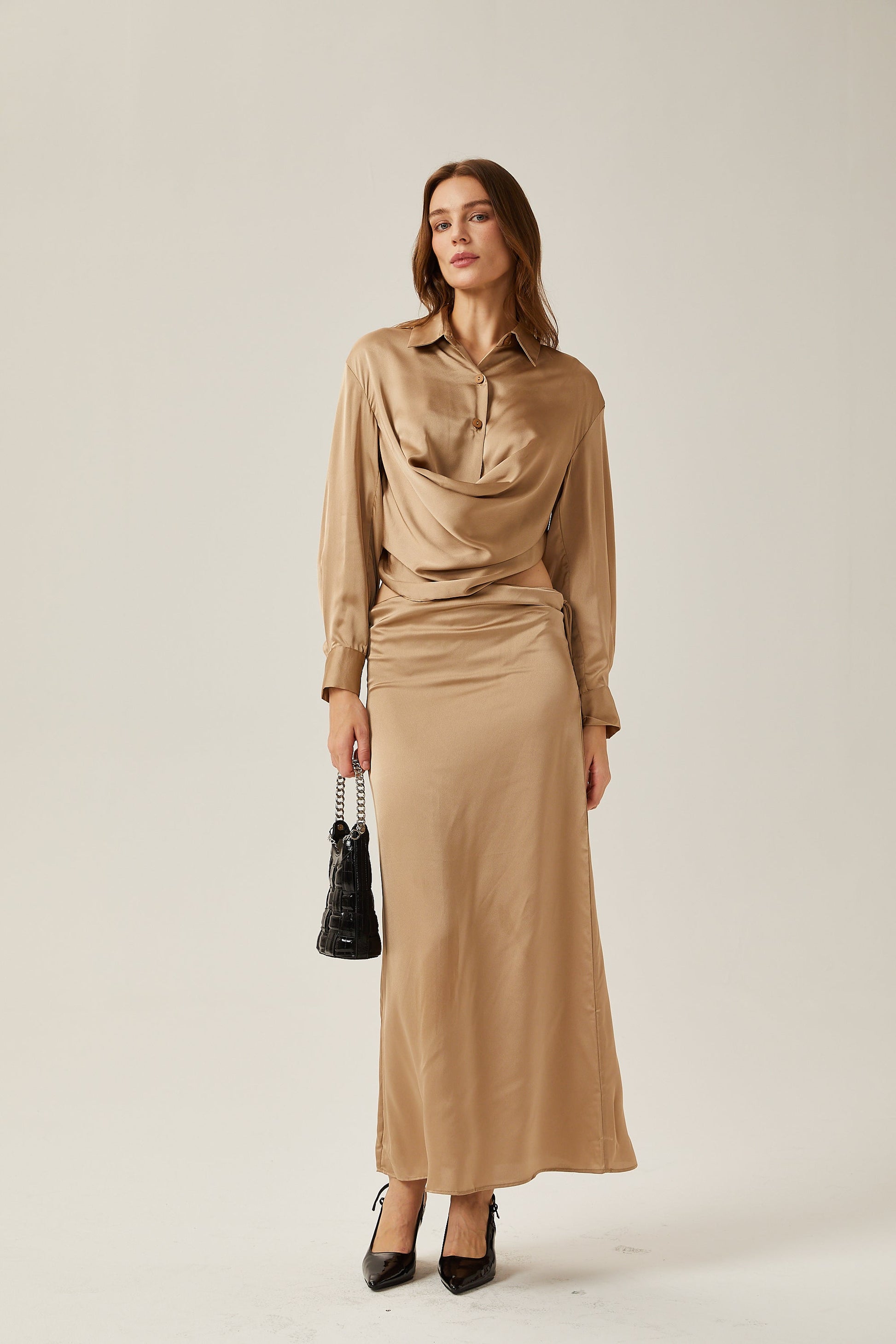 Penelope Altın Saten Bluz Ve Etek Eşleştirme Seti
