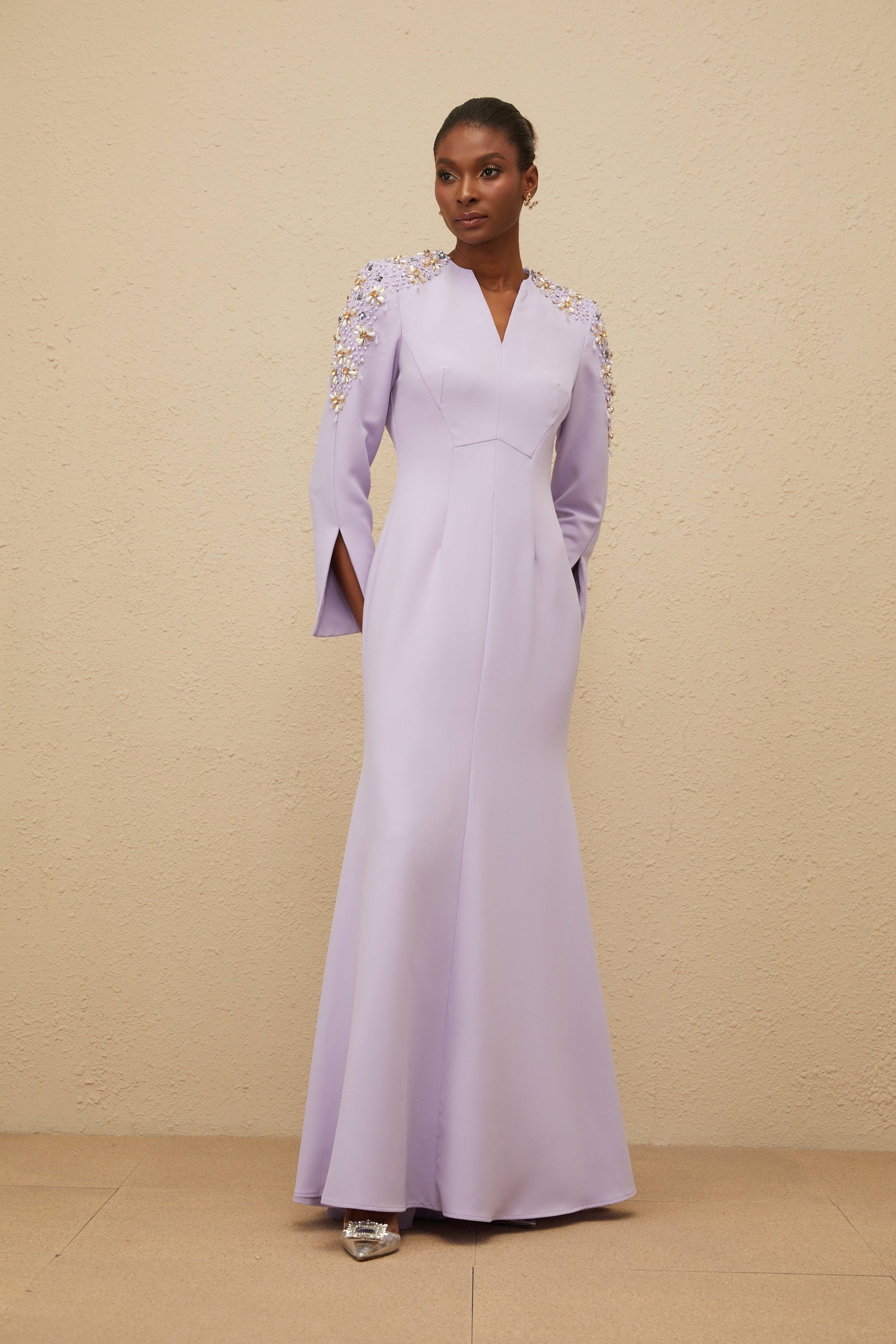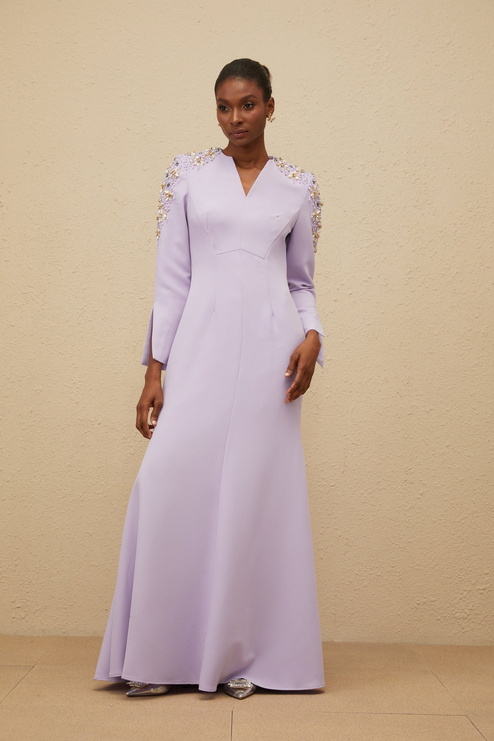 Rêverie Mor Kloş Süslemeli Uzun Elbise