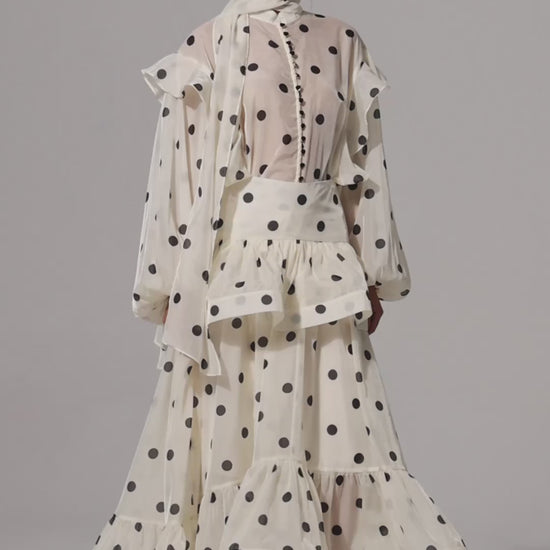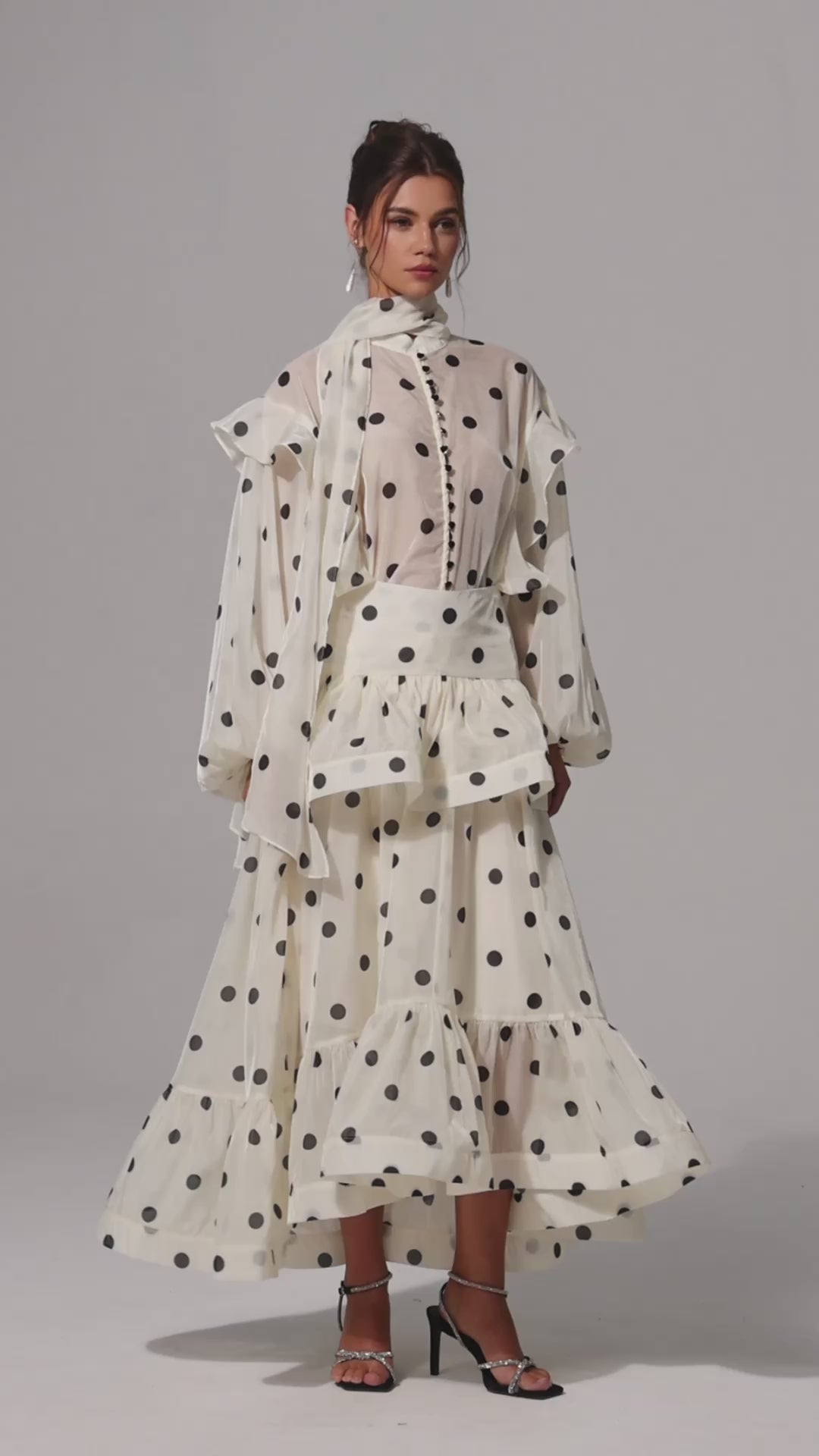 Rode Nokta Baskılı Katlı Uzun Kollu Üst ve Etek İki Parçalı Takım