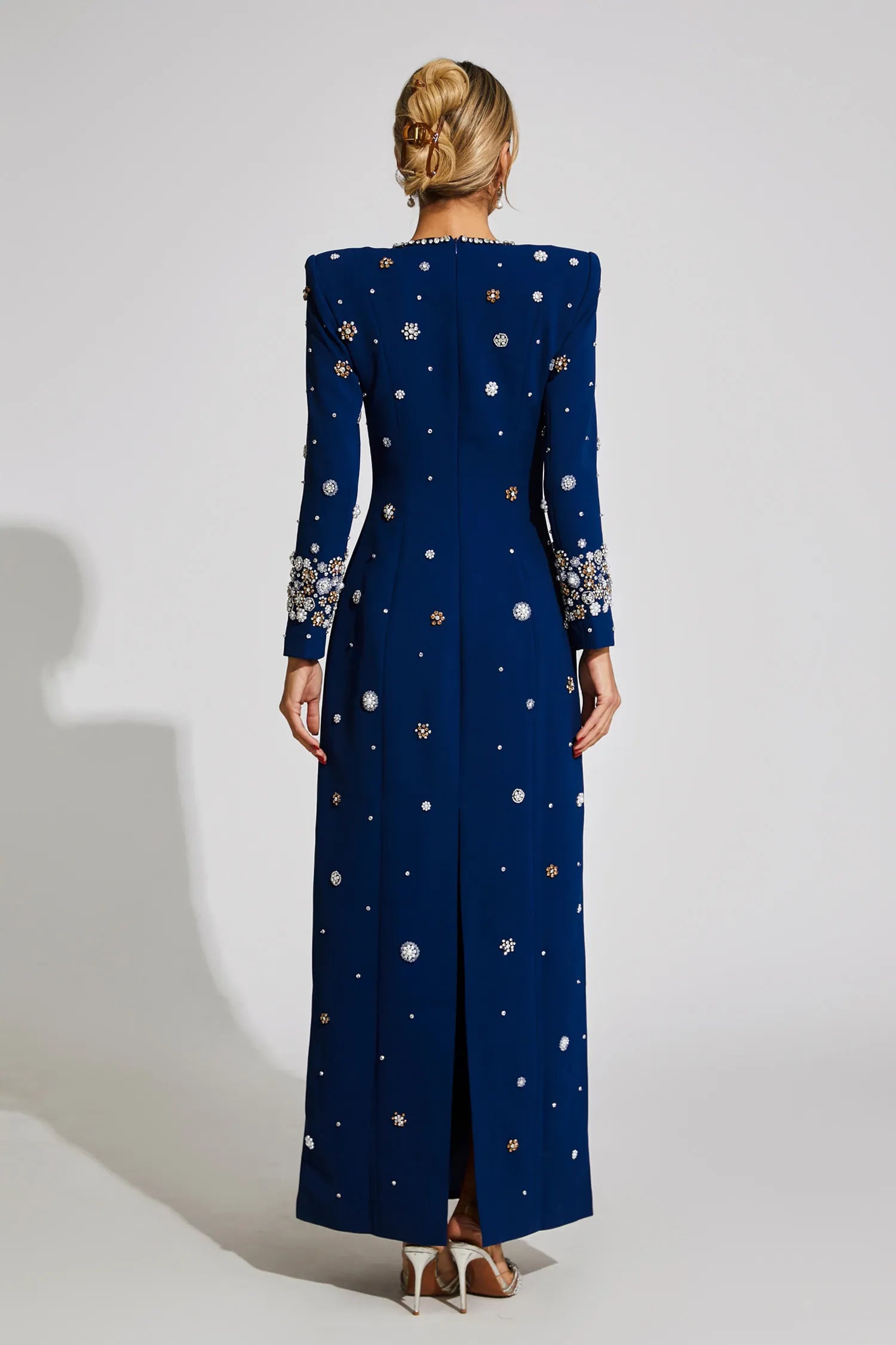 Uzun Kollu Maxi Elbise ile stilinizi zirveye taşıyın. İnce işlenmiş boncuk detayları ve ışıltılı taş süslemeleriyle dikkat çeken bu özel parça, katıldığınız her davette göz alıcı bir duruş sergiler. Özenle hazırlanmış tasarımıyla modayı ve zarafeti kusursuzca birleştiren bu elbise, resmi davetler ve özel günler için gardırobunuzun zamansız bir parçası olacak.